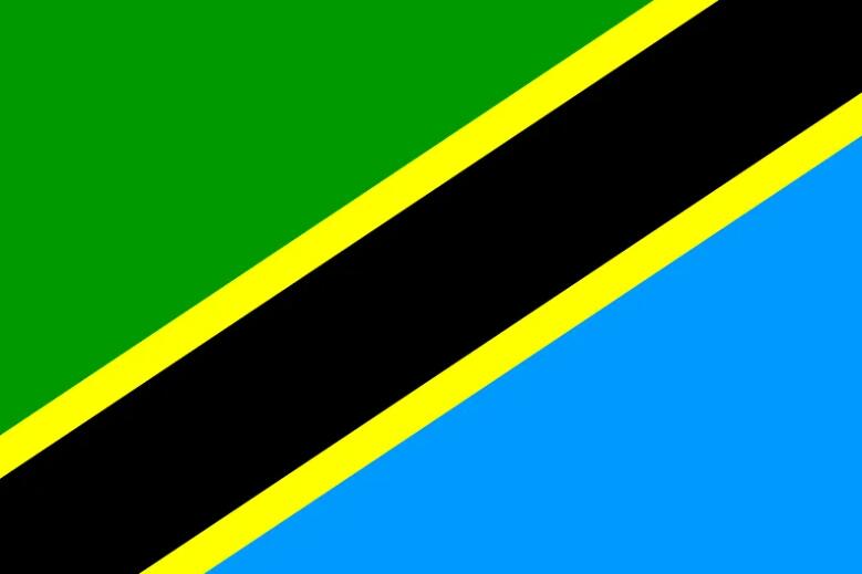 坦桑尼亞國旗坦桑尼亞國旗呈長方形,長與寬之比為3:2。旗面由綠、藍、黑、黃四色構成,左上方和右下方為綠色和藍色的兩個相等的直角三角形,帶黃邊的黑色寬條從左下角斜貫至右上角。綠色代表土地,還象征對伊斯蘭教的信仰;藍色象征河流、湖泊和海域;黑色代表非洲黑人;黃色象征豐富的礦產資源和財富。