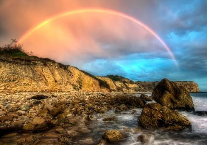 彩虹,又稱天弓、天虹、深紅色,簡稱彩虹,是一種大氣光學(xué)現(xiàn)象當(dāng)陽光打在半空中的水滴上時,光線會發(fā)生折射和反射,在天空中形成拱形的彩色光譜,從外環(huán)到內(nèi)環(huán)都是紅色的、橙、黃、綠、藍(lán)、靛、紫七種顏色。事實(shí)上,彩虹有無數(shù)種顏色例如,紅色和橙色之間有許多細(xì)微的區(qū)別,但為了簡單起見,通常只用七種顏色作為區(qū)別。